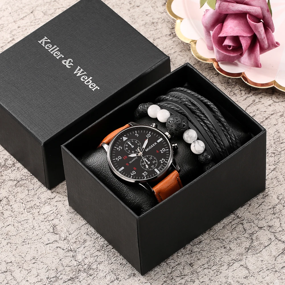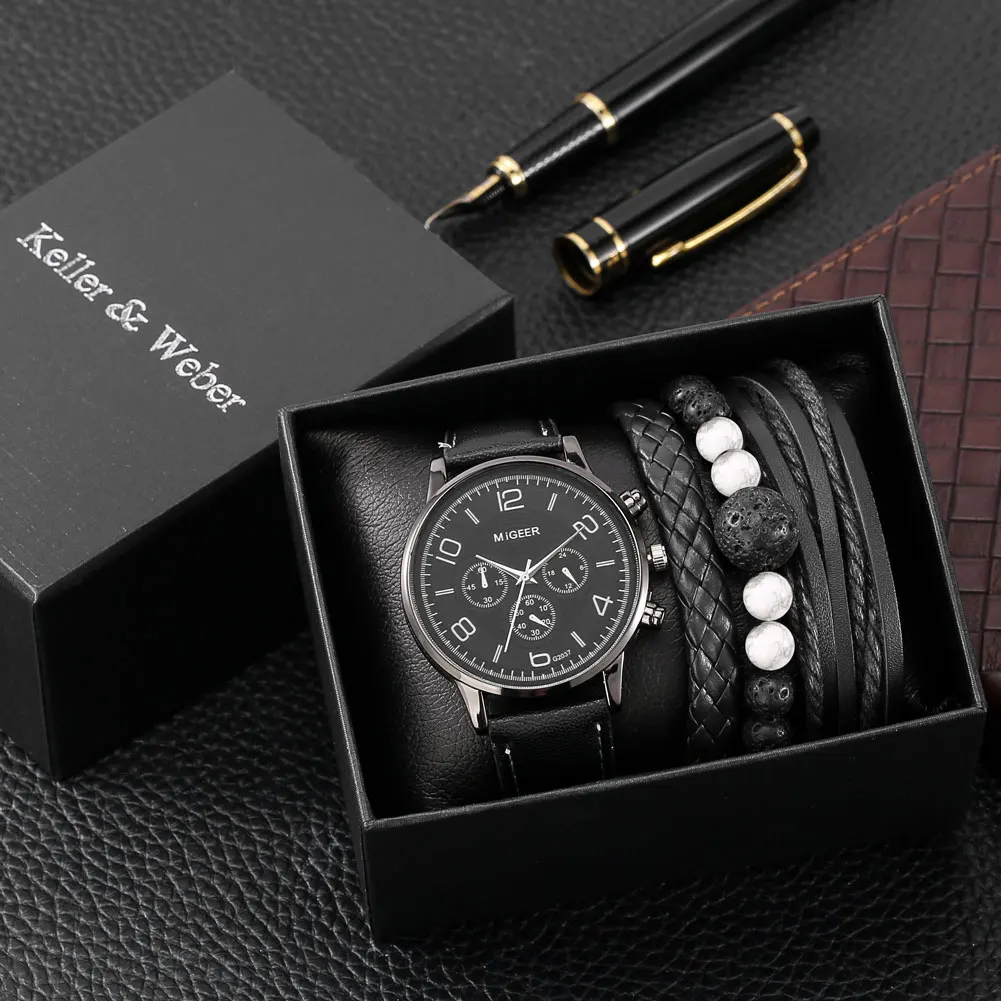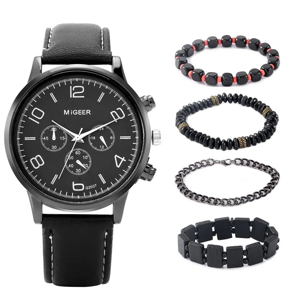 5Набор мужских часов с арабскими цифрами, кварцевые часы с кожаным ремешком, изысканные роскошные мужские модные часы, подарок для мужа бойфренда