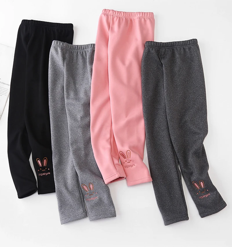 Детские зимние леггинсы с кроликом, на весну и осень, с бархатной п...