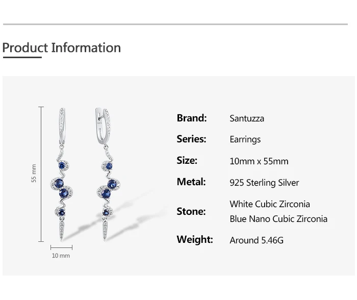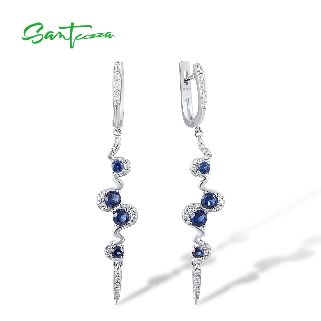 Женские серебряные сережки-подвески SANTUZZA, из серебра 925 пробы с синим и белым кубическим цирконием, Изящные Ювелирные украшения