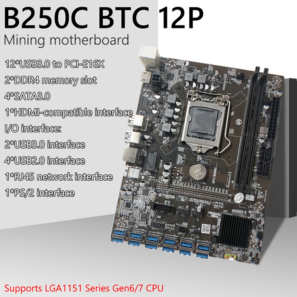 Материнская плата B250C BTC 12 USB3.0 к PCIe 16X для майнинга, сист...