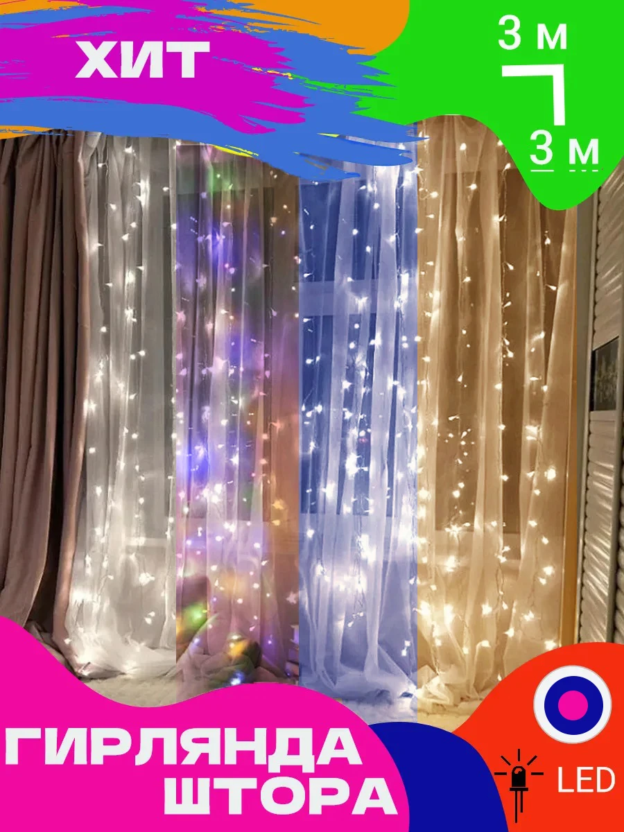 Гирлянда штора 3*3 м гирлянда дождь электрическая новогодняя светодиодная гирлянда гирлянда штора на елку