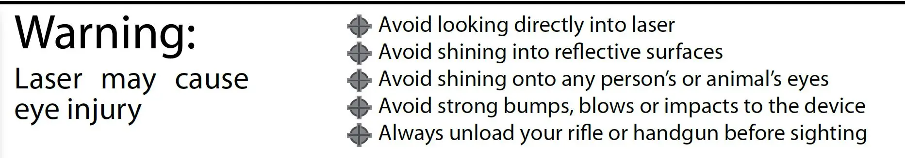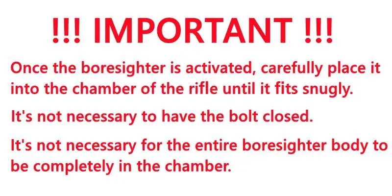 * Убедитесь, что ваше оружие разгружено и направлено в безопасном направлении, прежде чем поместить лазерный прицел в камеру.* Не подвергать сухому огню, пока находится ствол отверстия.