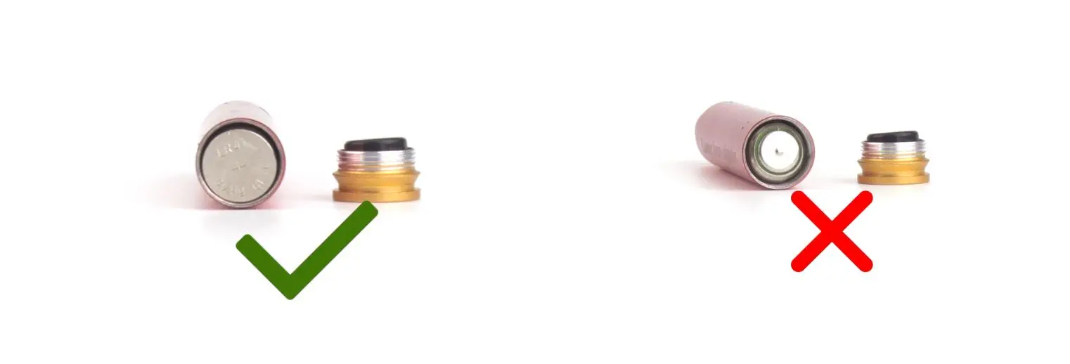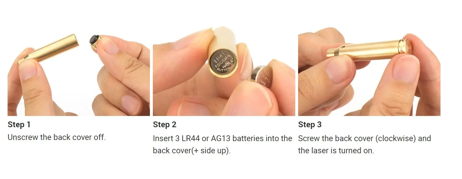 * Отвинтите торцевую крышку и вставьте 3 батарейки AG13/LR44 (+ боковина).* Прикрутите заднюю крышку (по часовой стрелке) и Включите лазер.* Так как вид отверстия не имеет выключателя вкл/выкл, пожалуйста, удалите батареи после использования.