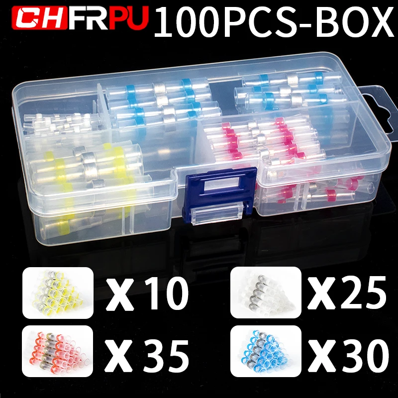 100 шт. в коробке, водонепроницаемый сварочный термоусадочный соединитель для проводов, паяльная втулка, набор обжимных клемм для проводов, морская изоляция