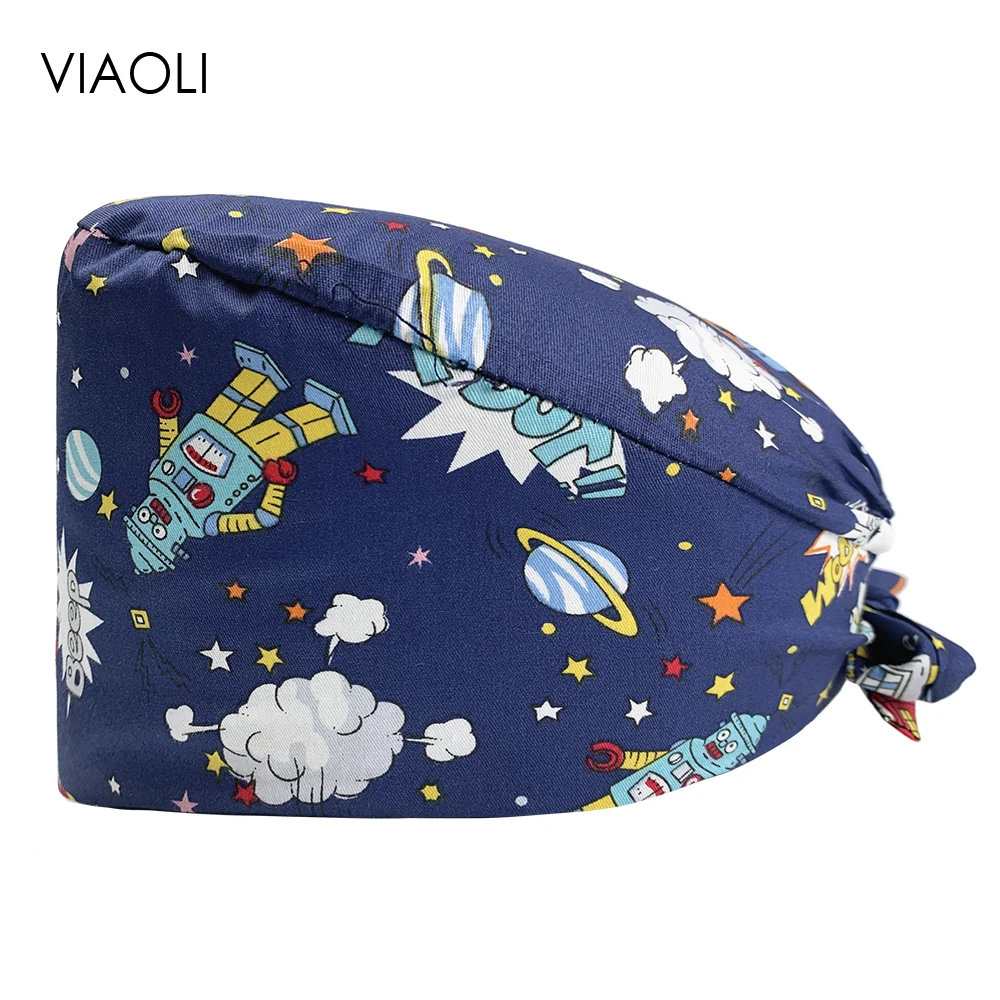 Мультяшный принт, повседневные Шапки для медсестер красоты, стоматологии, врачей, бриллиантов, шапочка для стоматологической клиники, медицинской хирургии