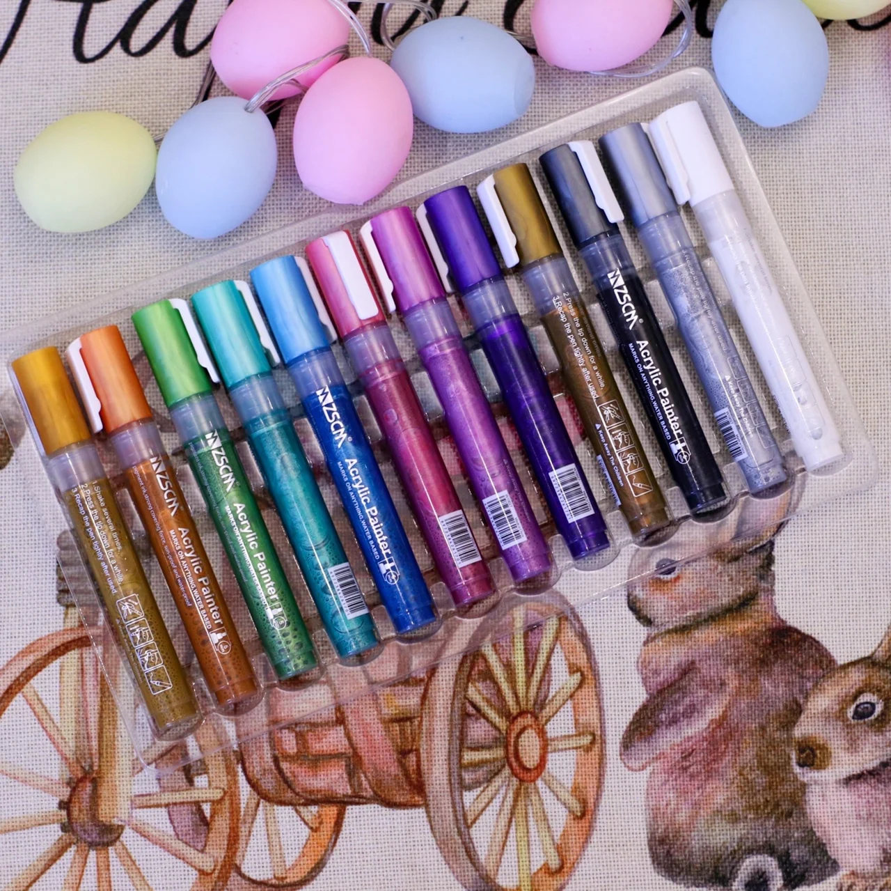 Ручки для рисования, акриловые маркеры ZSCM, 12 цветов, художественные маркеры для Хэллоуина, искусственная роспись, металлические камни, краска на деревянные ломтики