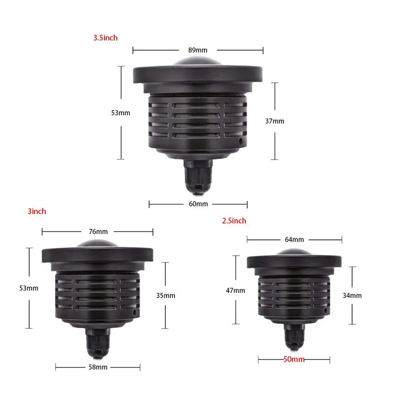 Размеры: 64 мм/2,5 дюйма, 76 мм/3 дюйма, 89 мм/3,5 дюймов