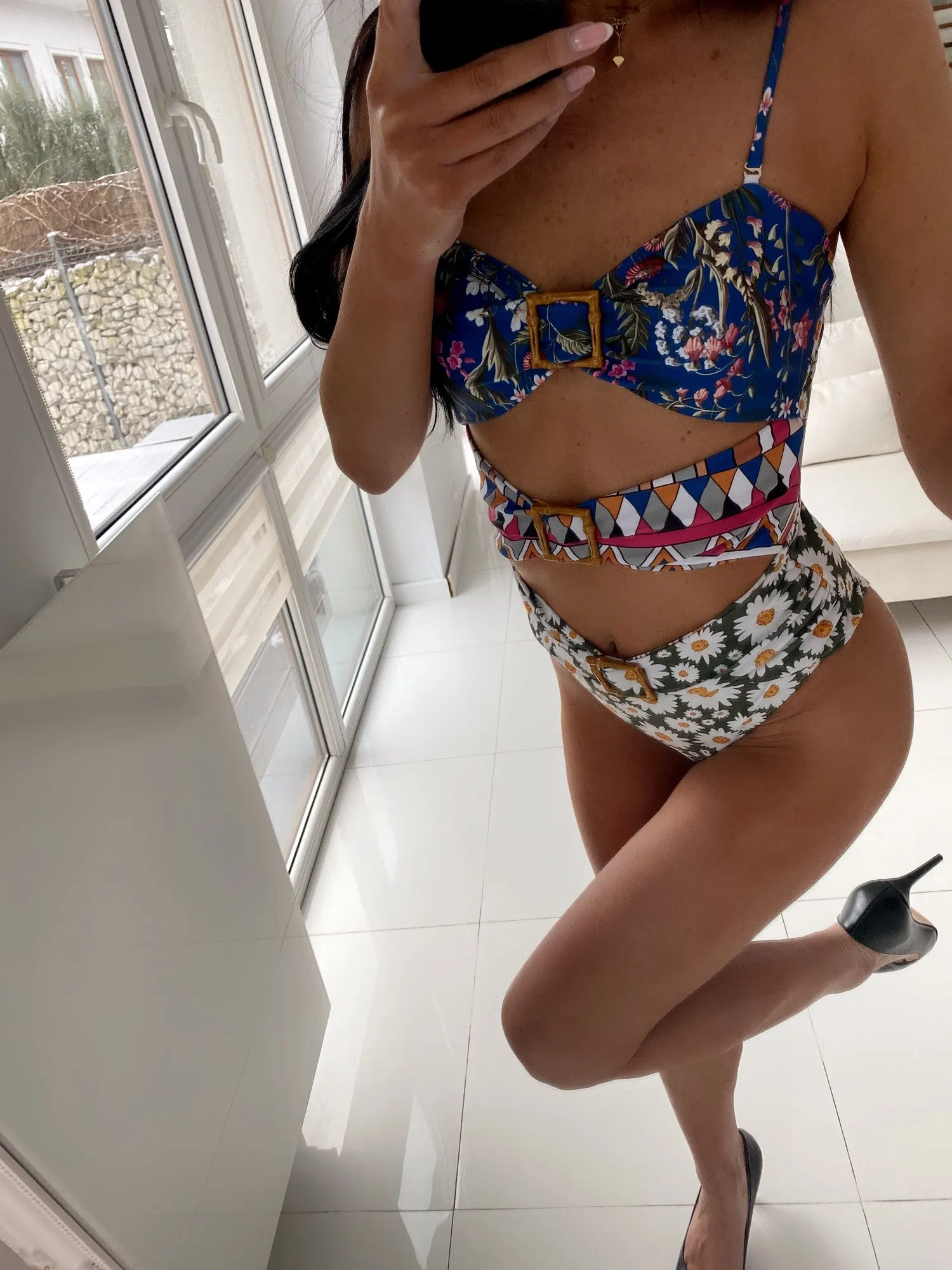 Цельный купальник. Прекрасная мода, декоративные вырезы. Регулируемые ремешки с odpiêcia. Хорошо проложенные чашки. Высокое качество продукции-премиум. Костюм очень удобный. Я ношу размер M, мои параметры 88/68/92 174 см, 56 кг.