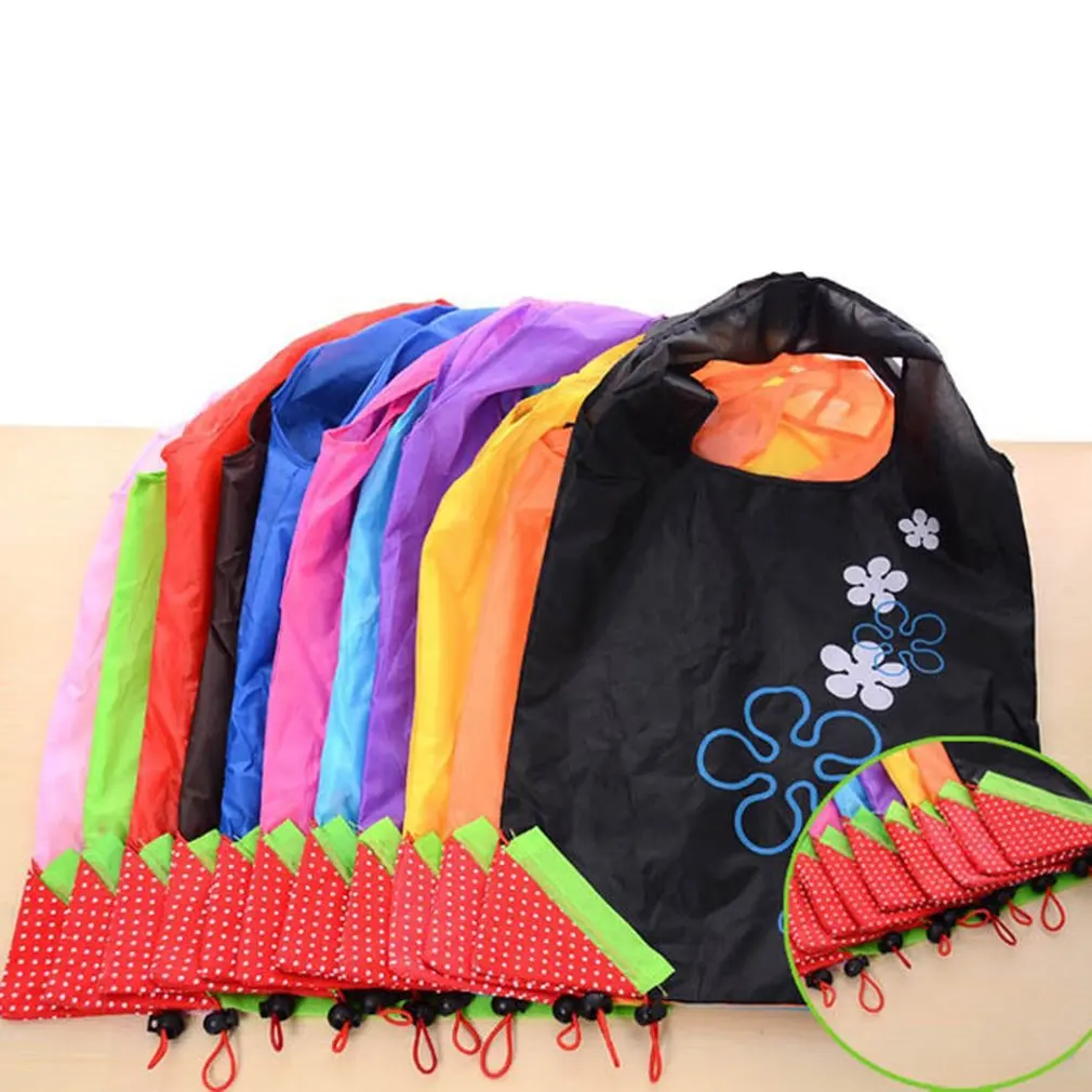 Милая складная сумка для покупок из полиэстера с клубничным дизайном Экологически чистая многоразовая Портативная сумка с ручками для продуктов
