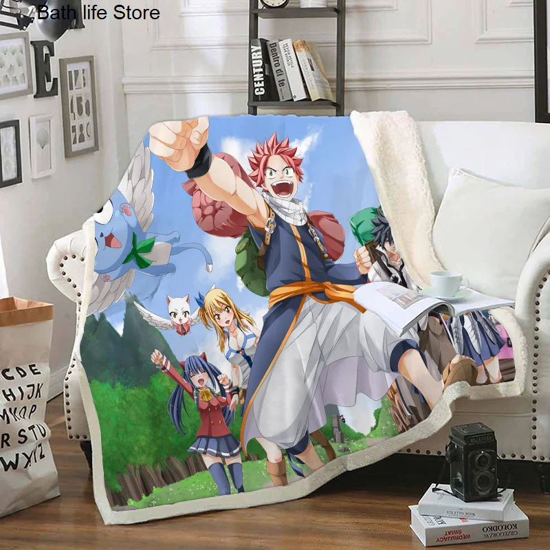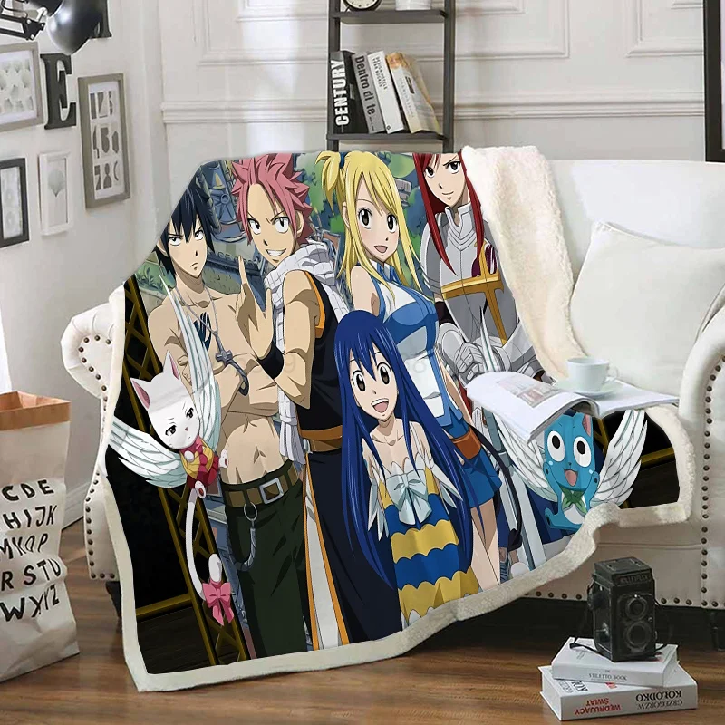 Плюшевое одеяло для девочек, покрывало с 3D рисунком феи и хвоста, покрывало в японском стиле аниме, покрывало на диван, покрывало для путешествий