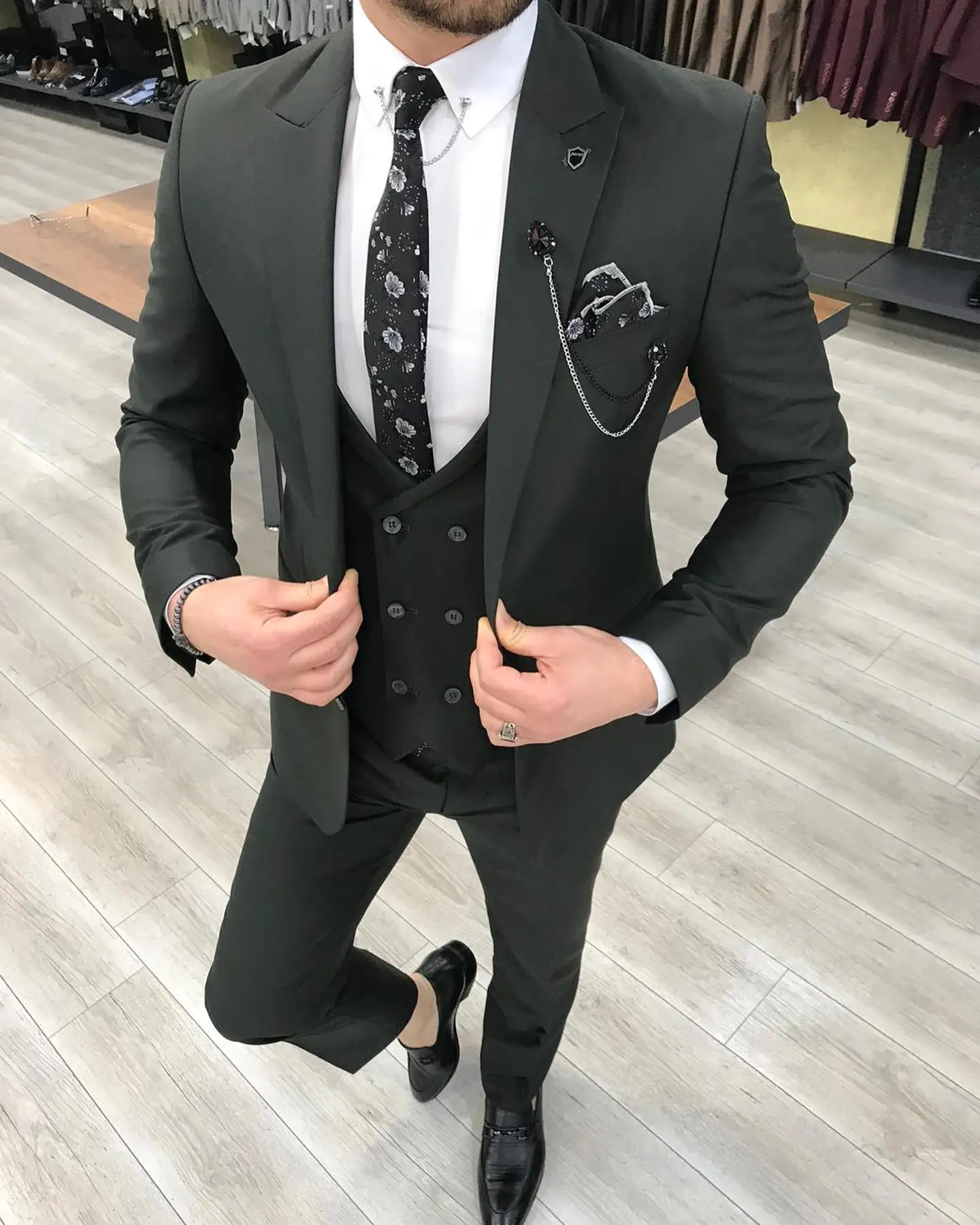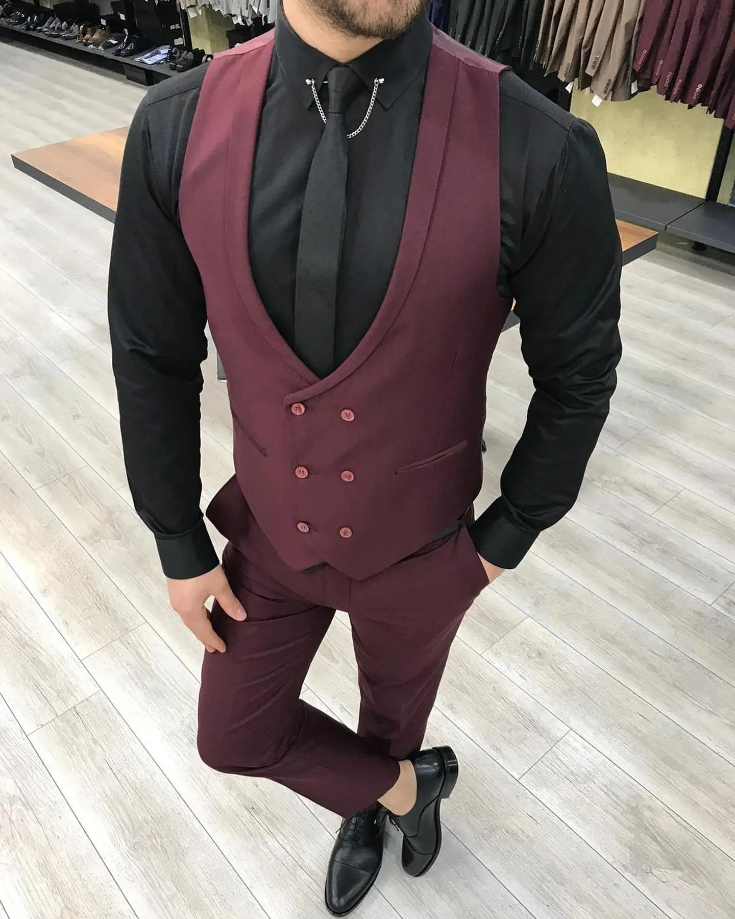 Новейший черный Классический мужской костюм из 3 предметов смокинг с пиковым отворотом свадебные костюмы для жениха бордовый мужской деловой пиджак брюки жилет