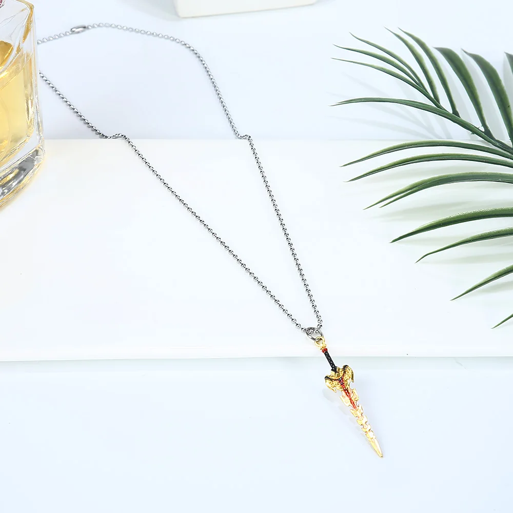 Игровое ожерелье Genshin ударопрочное оружие, цепочка из бусин, косплей, мечи, луки, лезвие из волчьего камня, маленький брелок из сплава, подвеска на подарок