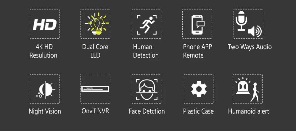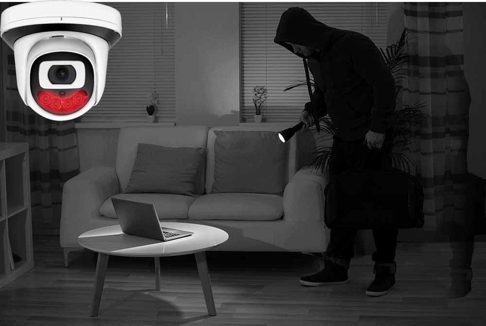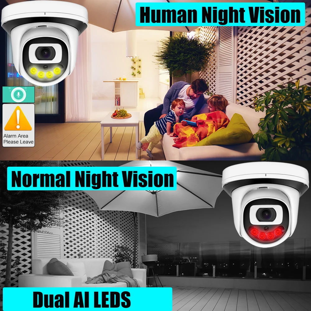 Гуманоидное оповещениеDefult будет черно-белым ночным видениемКогда человек входит в зону камеры, светодиодный индикатор будет белым, а изображение камеры будет иметь цвет.