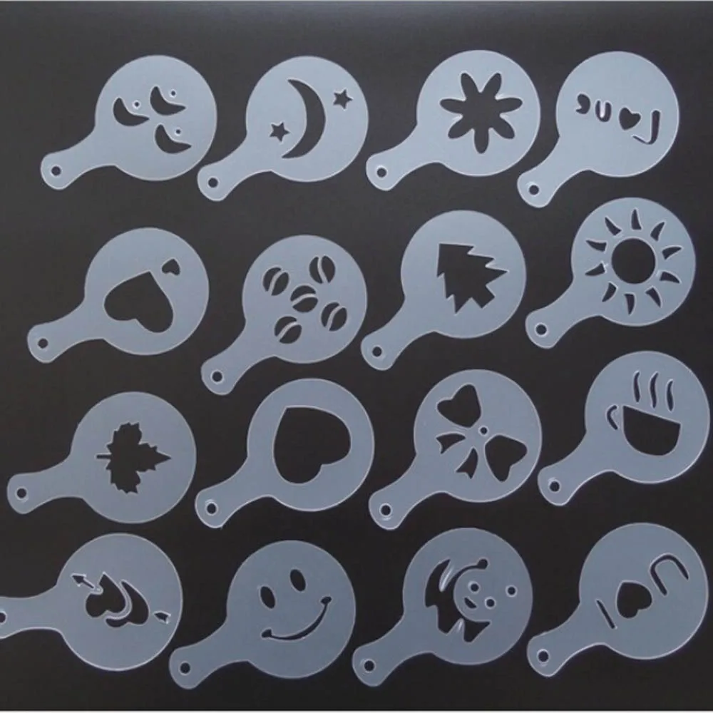 16 шт. трафарет для кофе с фильтром кофеварка для капучино трафареты для бариста шаблоны для трафаретов с цветами и распылителем художественные инструменты для кофе