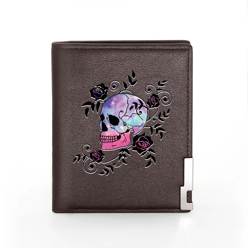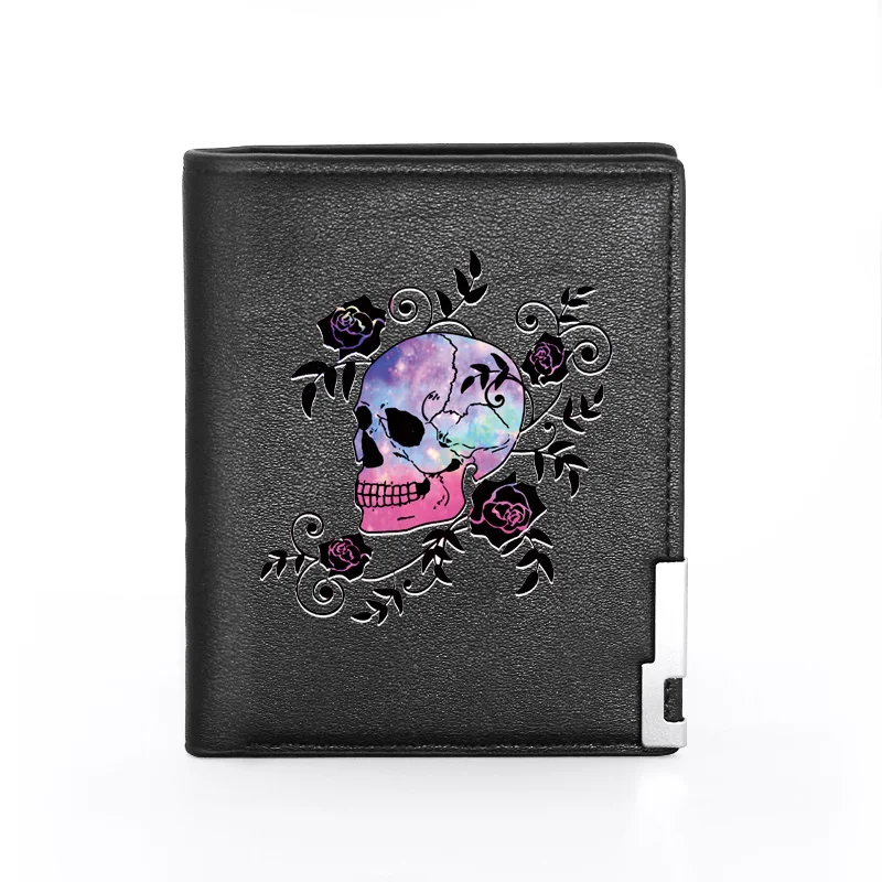Новое поступление, кожаный кошелек для мужчин и женщин, кошелек с изображением черепа, розы, лозы, тонкий кошелек для кредитных картудостоверений личности с вкладышами, кошелек для денег, Короткие Кошельки