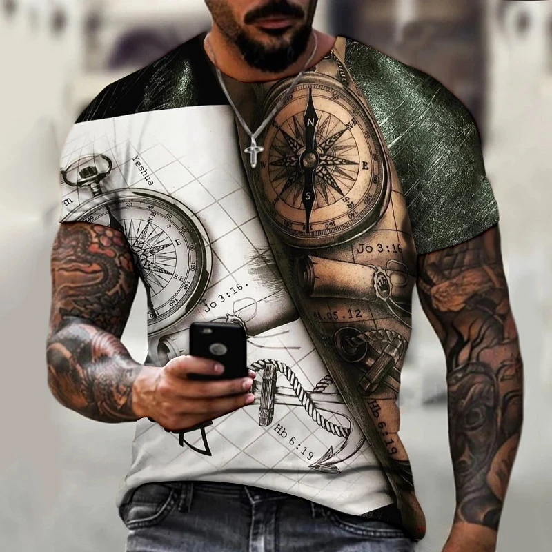 Новинка 2022, мужская летняя футболка с 3D-принтом компаса, футболк...