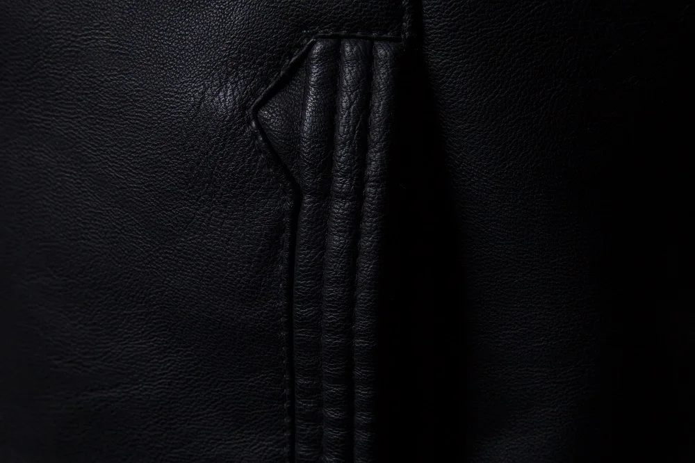 Мужская кожаная куртка с воротником-стойкой, Повседневная однотонна...