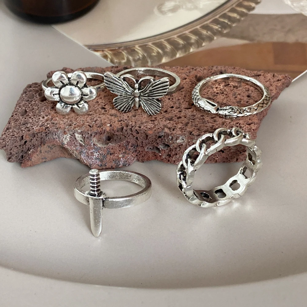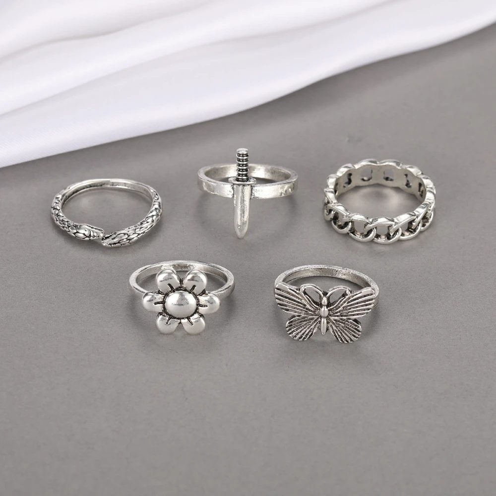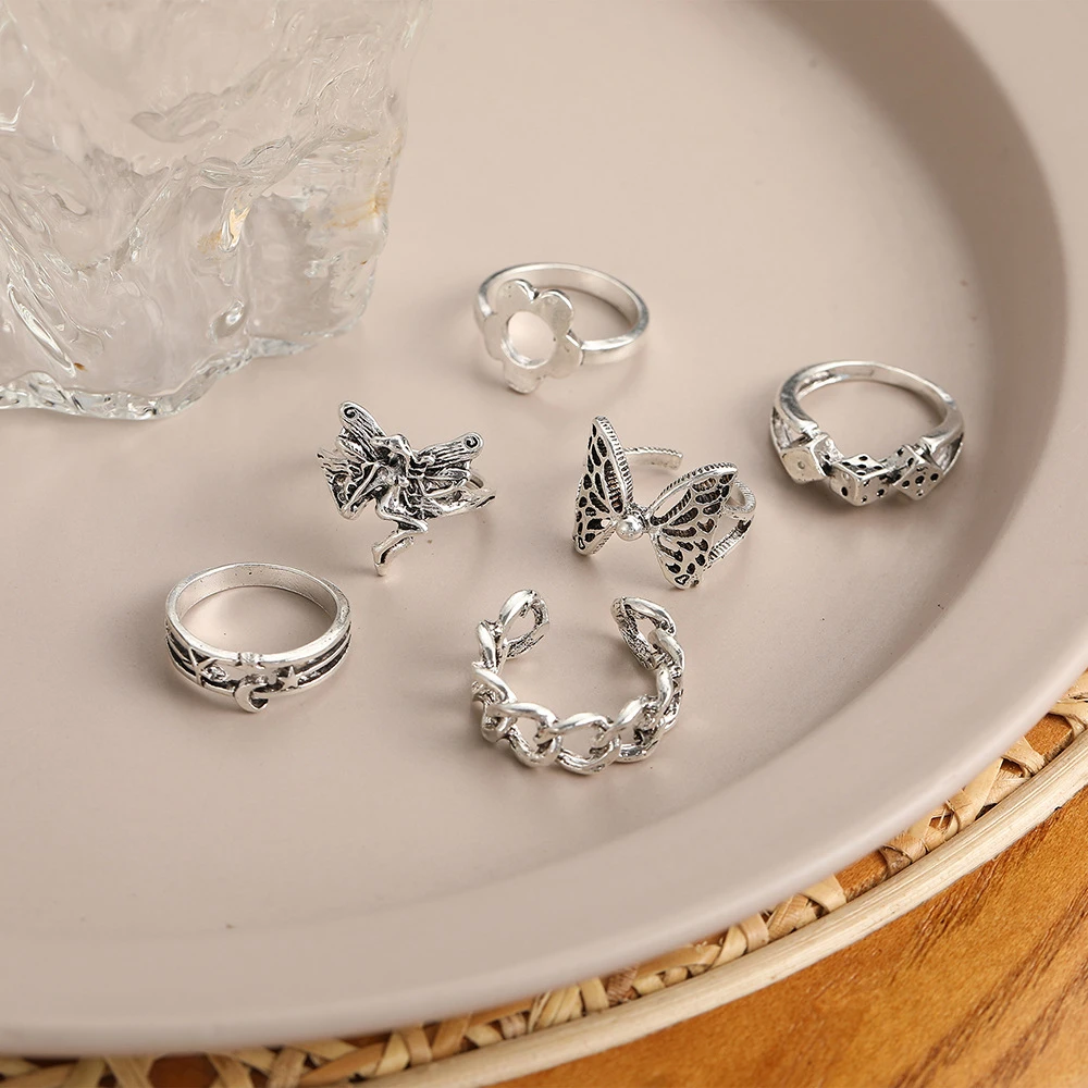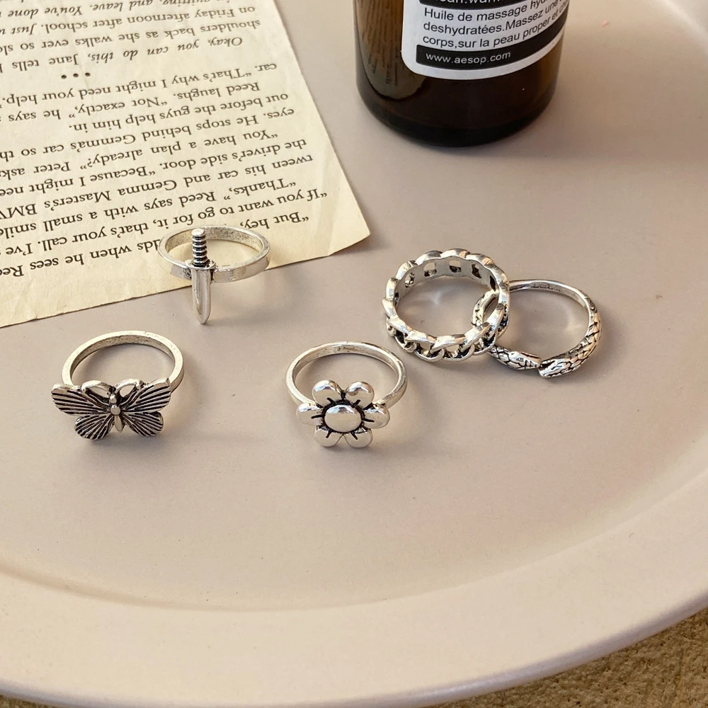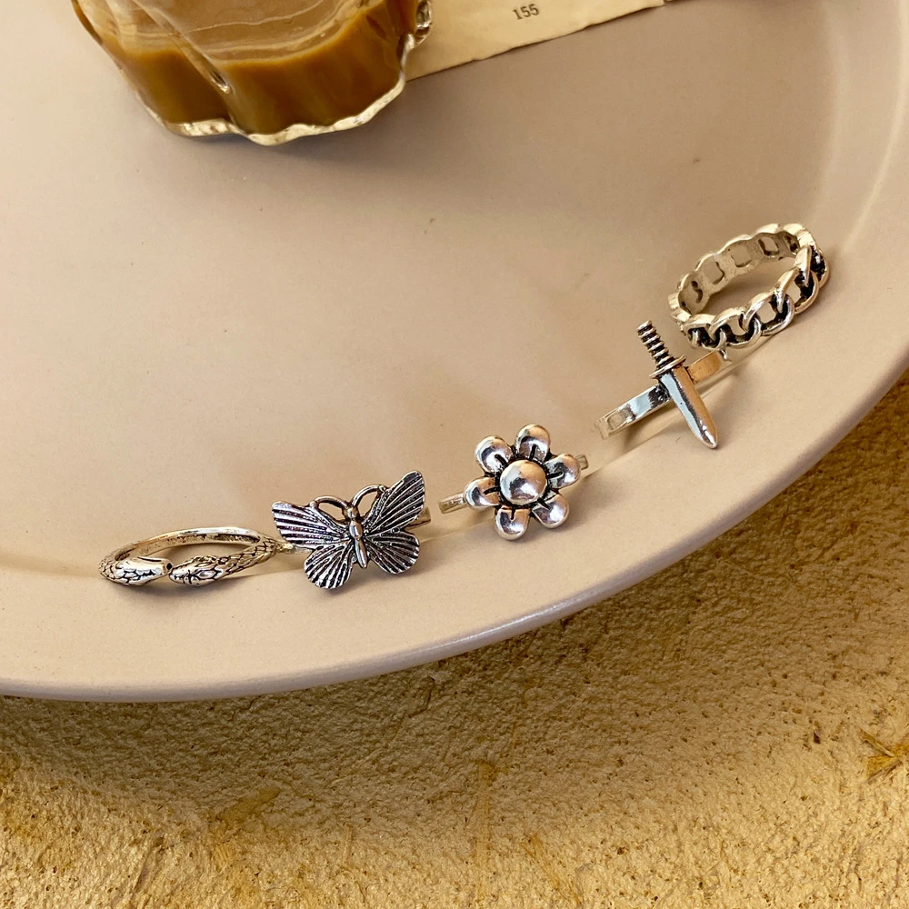 Набор колец в стиле панк с цветами и бабочками для женщин, винтажны...