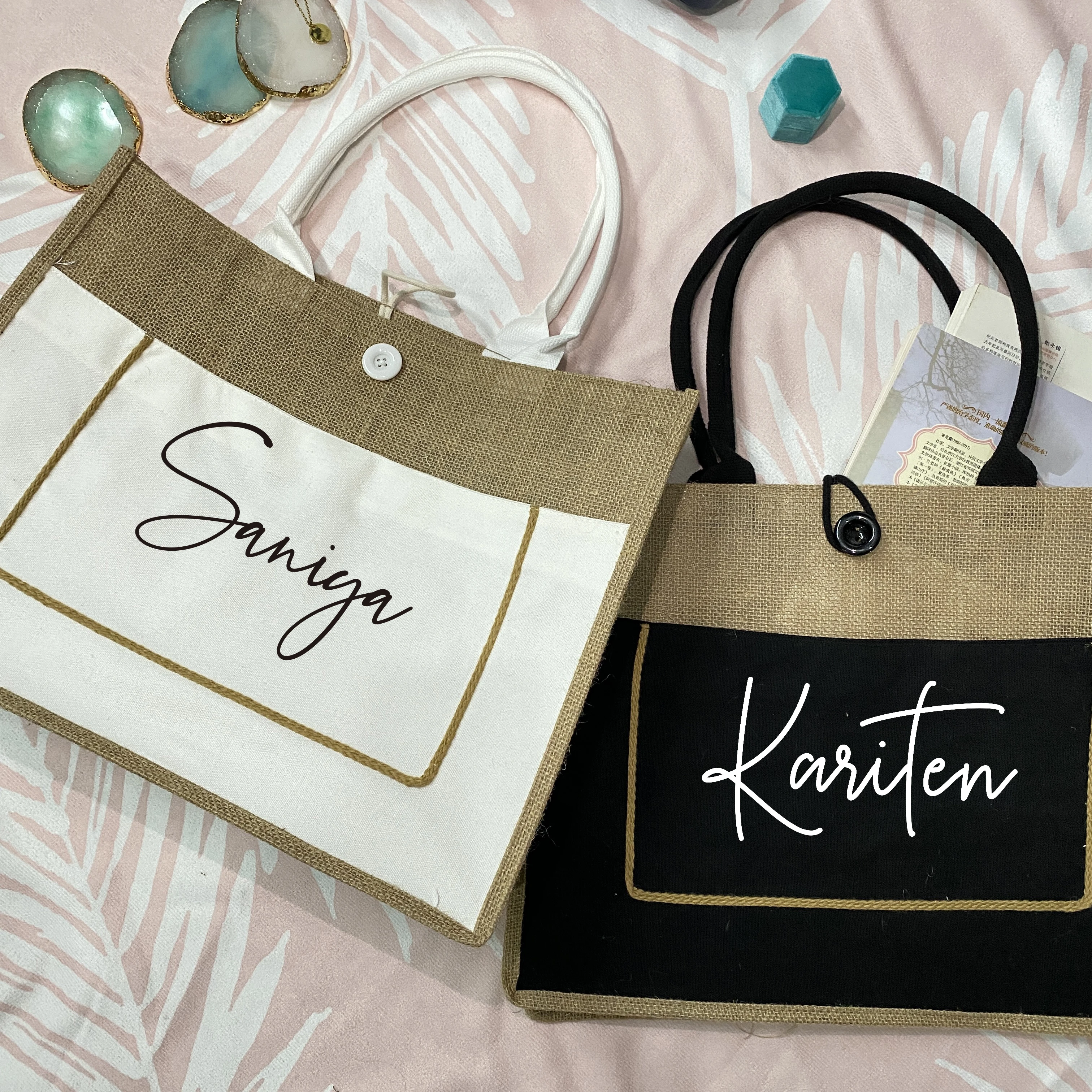 Джутовая сумка-тоут, персонализированная большая сумочка для рождественских подарков, свадебная сумка для подружки невесты, Повседневная сумка для покупок с именем на заказ