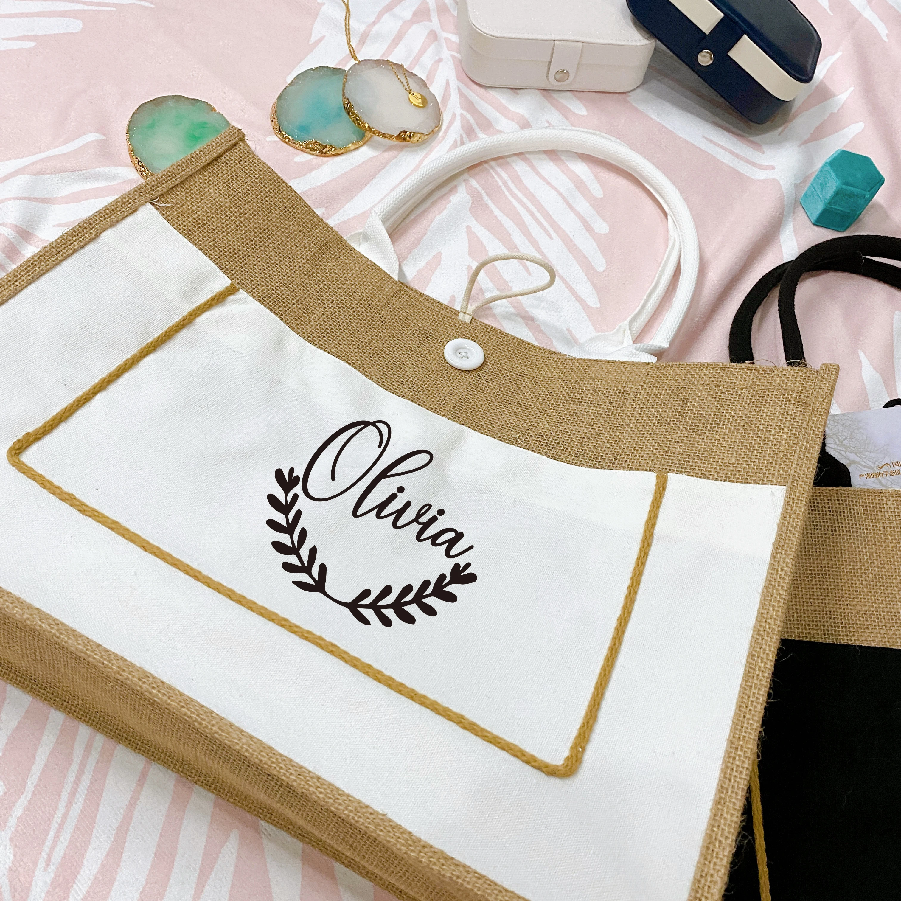 Персонализированная пляжная Джутовая сумка-тоут, многоразовая сумка...