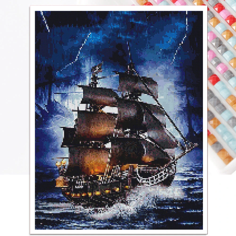 Бриллиантовая живопись, замок, квадратная круглая Алмазная вышивка, пейзаж, корабль, мозаика, картина Стразы, домашний декор