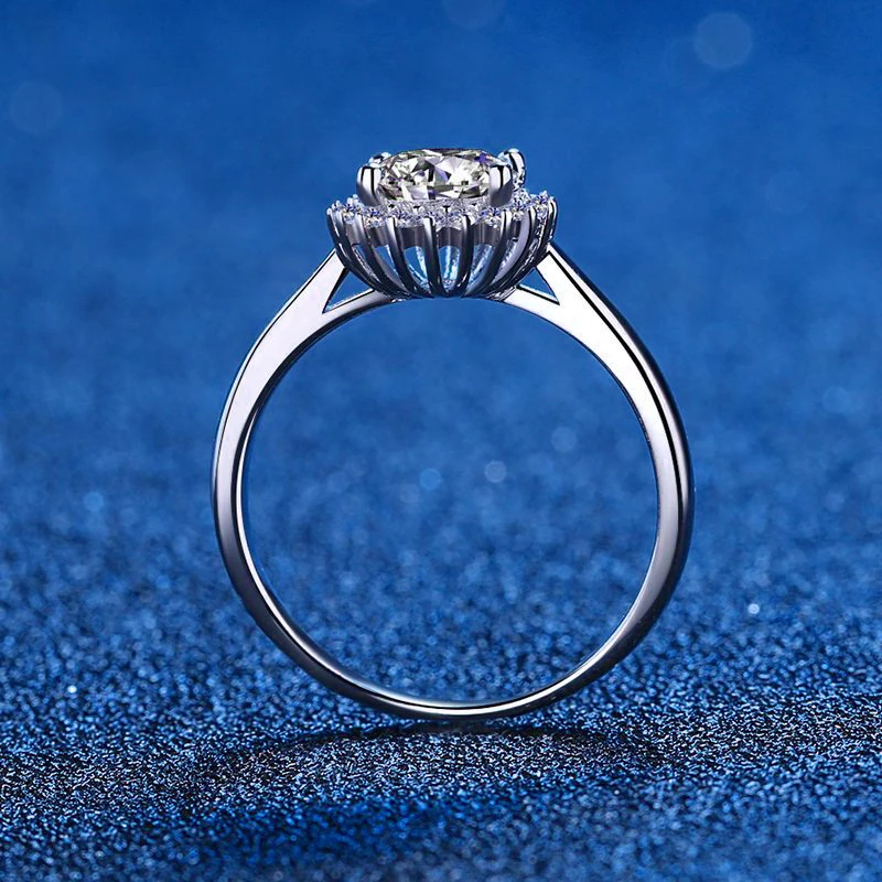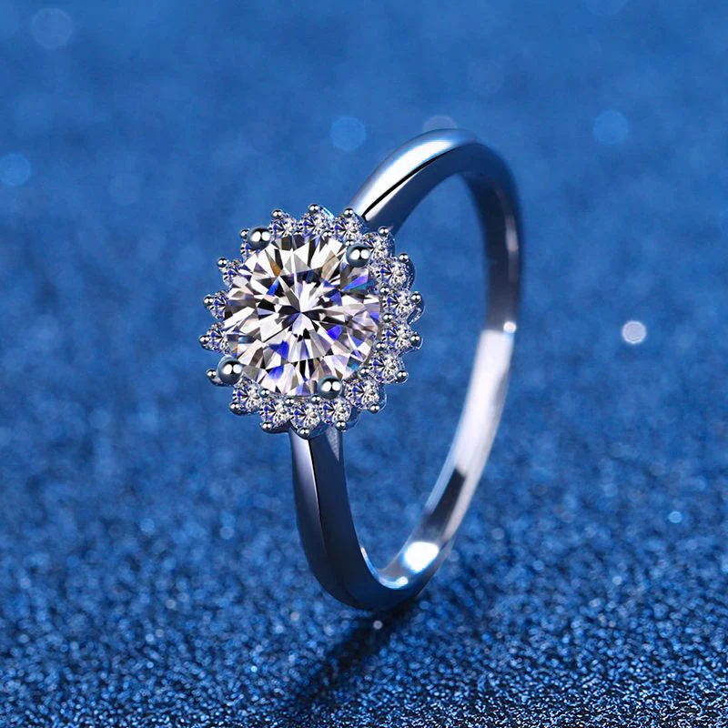 100% обручальное кольцо Moissanite с цветком 14 к позолоченное Стерлинговое серебро круглые бриллиантовые кольца Halo для женщин Свадебные ювелирные изделия