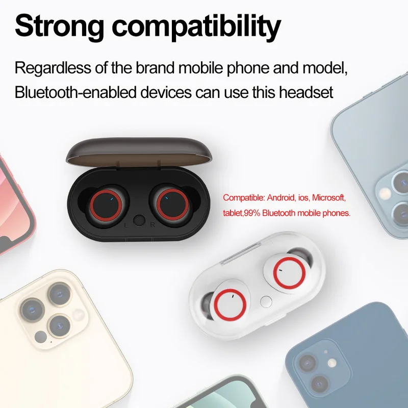 Беспроводные Bluetooth наушники Y50 TWS, стереонаушники, спортивная водонепроницаемая гарнитура с микрофоном для всех смартфонов VS Y30