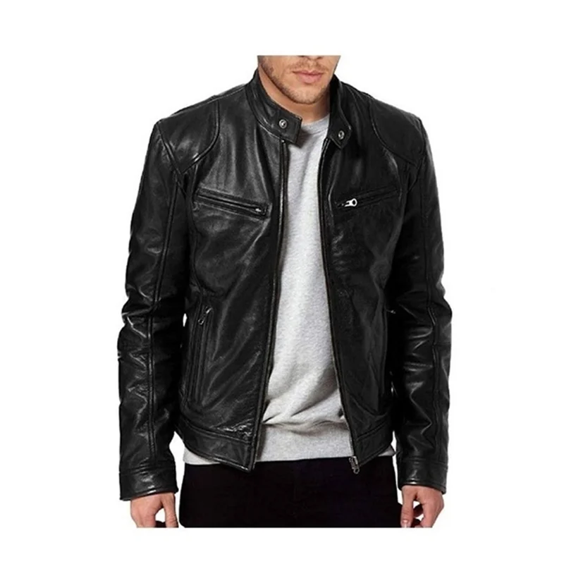 Мужская кожаная куртка с воротником-стойкой, на весну и осень