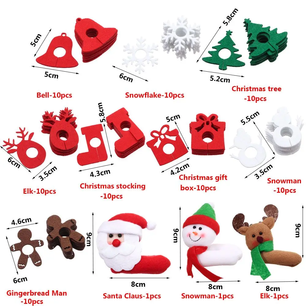Совершенно новый и высококачественный специальный дизайн и простота в использовании для бокалов для вина и бутылок на Chritsmas вечерние и другие вечерние. Используйте его, чтобы отметить ваше стекло, и больше людей не будут принимать неправильные стекла в ваши вечерние. Они могут быть смешаны с другими праздничными украшениями, чтобы сделать ваш Рождественский стол праздничным. Технические характеристики Материал: фланель Размер: как на шоу повод: вечерние, свадебные и т. Д. Украшение бара, украшение дома, Рождественское украшение, украшение стола, вечерние украшения комплектация: 1/10 шт xChristmas Cup украшение кольца