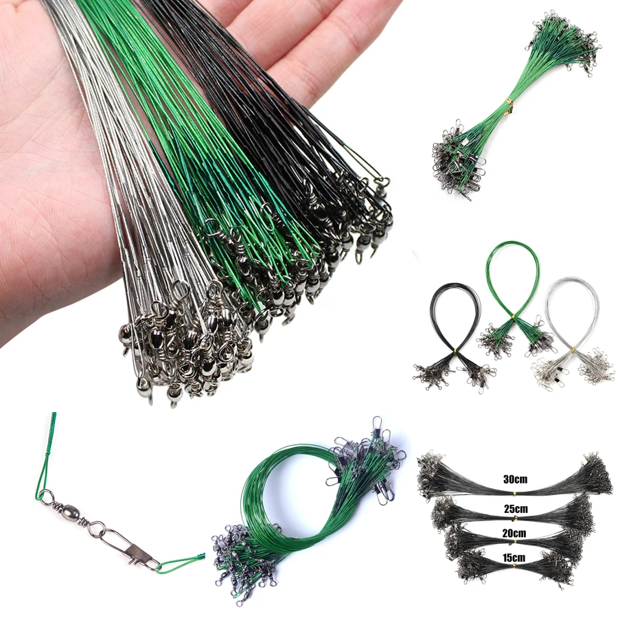 20 шт. Стальная леска с защитой от укусов, стальная проволочная поводка с поворотным рыболовным аксессуаром, поводок, сердечник, рыболовная проволока, 15 см-50 см