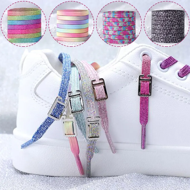 Эластичные шнурки без завязывания, яркие плоские шнурки для обуви, шнурки с металлическим замком для детей и взрослых, один размер, подходит для любой обуви