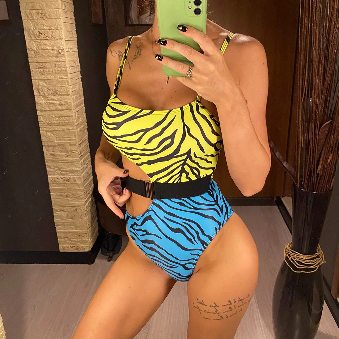 2021 сексуальный цельный купальный костюм с принтом и вырезами на ж...