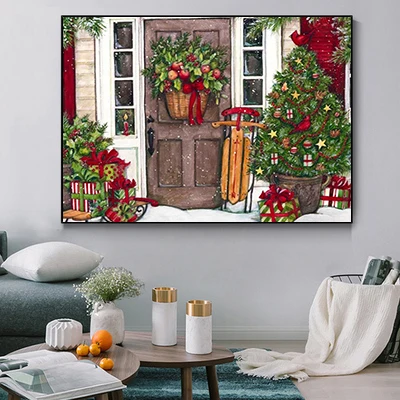Nabi 5D DIY алмазная живопись Рождественская фотография двери мозаика пейзаж Картина Стразы домашнее украшение искусство
