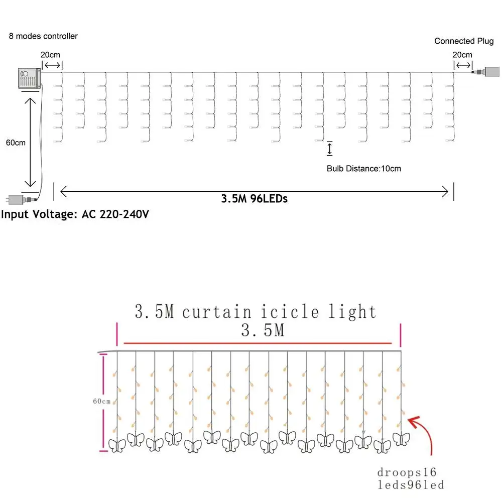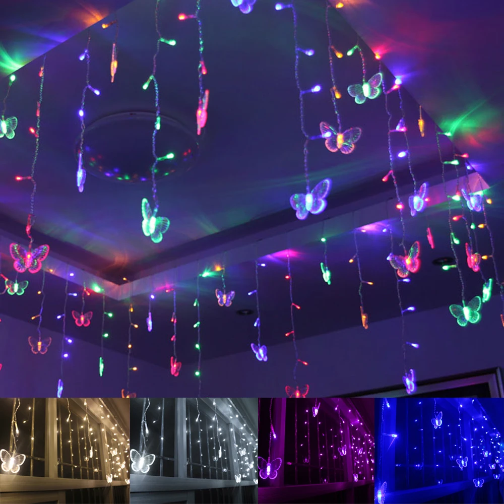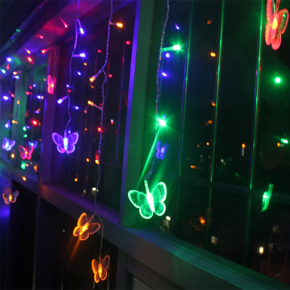Наружная Рождественская бабочка, светодиодный светильник s, мигающий светильник s, занавес, светильник s, водонепроницаемый, для улицы, для праздника, вечеринки, подключаемый, волновой, сказочный светильник
