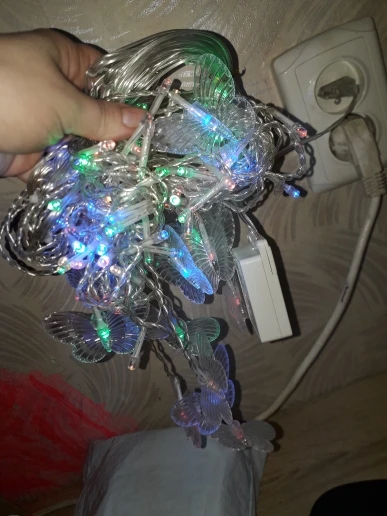 приехала посылка довольно быстро меньше месяца в Украину. Соответсвует описанию гирлянда бабочки достаточно большие из пластика. режимы переключаются. из недостатков это очень хлипкая вилка в розетку и провода тонкие а также плохая доставка из за которой упаковка очень придавлена и повреждена. хорошо что товар не пострадал
