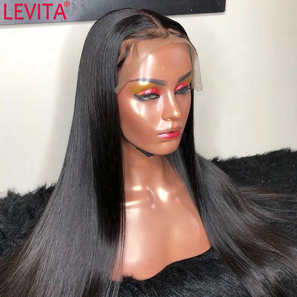 Парик LEVITA из бразильских прямых человеческих волос, предварительно выщипанный, без клея, 30 дюймов, на сетке, для женщин