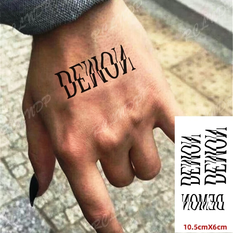 Водостойкая Временная тату-наклейка, черные английские слова, демон, буквы, шея, руки, ноги, флэш-тату, искусственная тату для женщин и мужчин