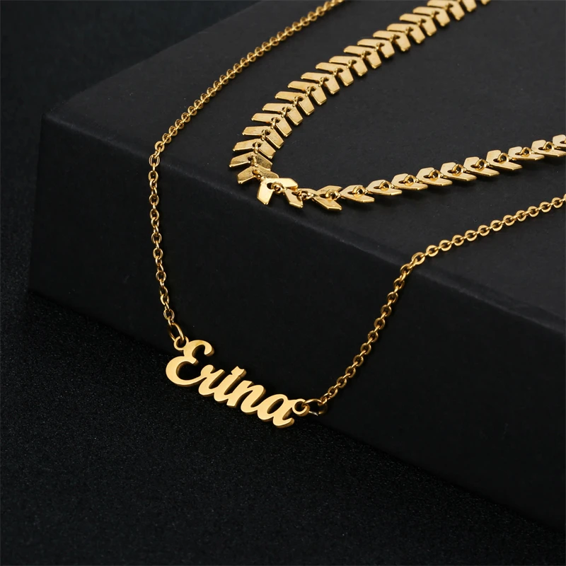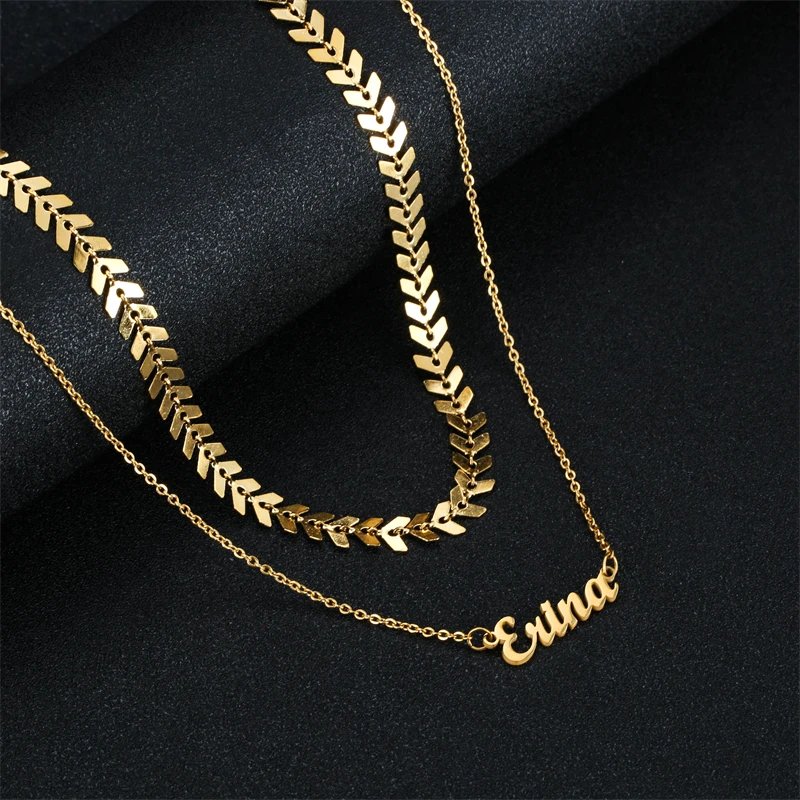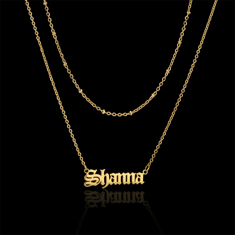 Двухслойное ожерелье с именем под заказ для женщин и мужчин, эксклюзивное ожерелье под шею под заказ в богемном стиле со старыми английскими буквами