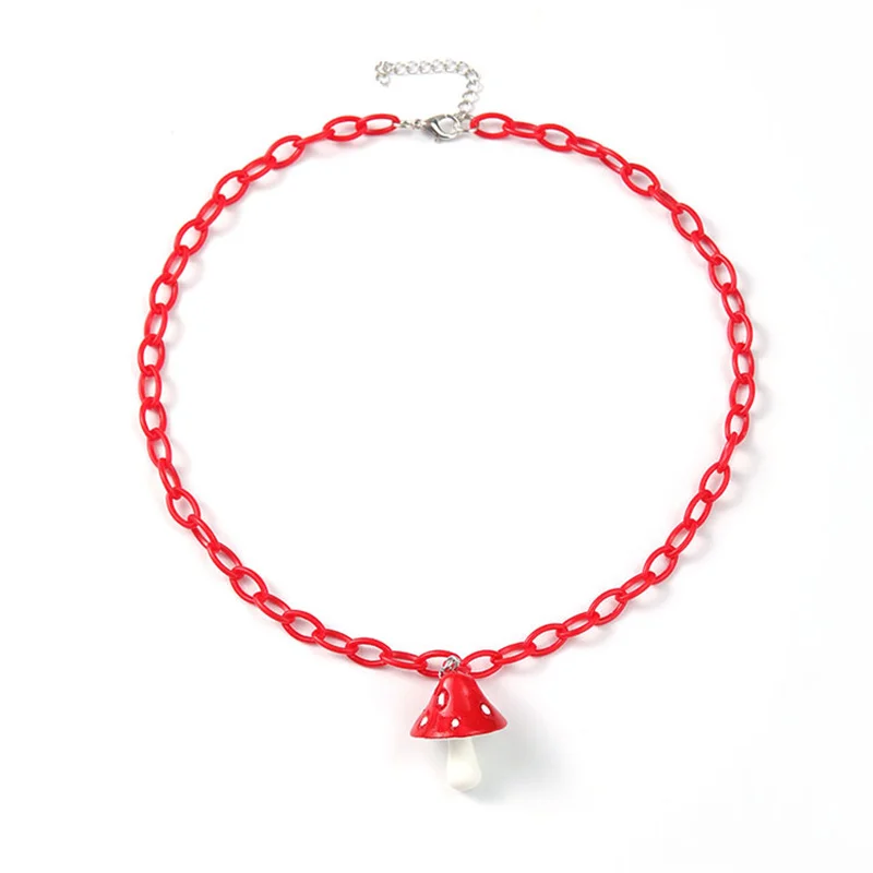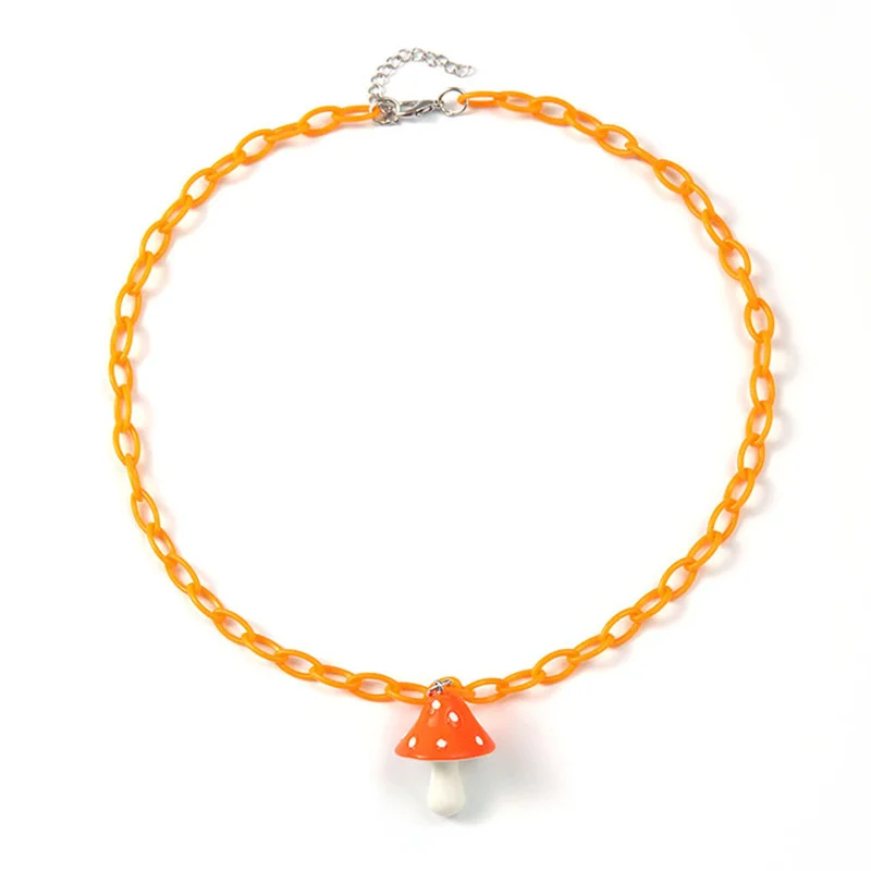Ожерелье с подвеской в виде цветных грибов для женщин, милые Чокеры с пластиковой цепочкой, ожерелье для женщин, аксессуары для рождественской вечеринки, подарочные аксессуары