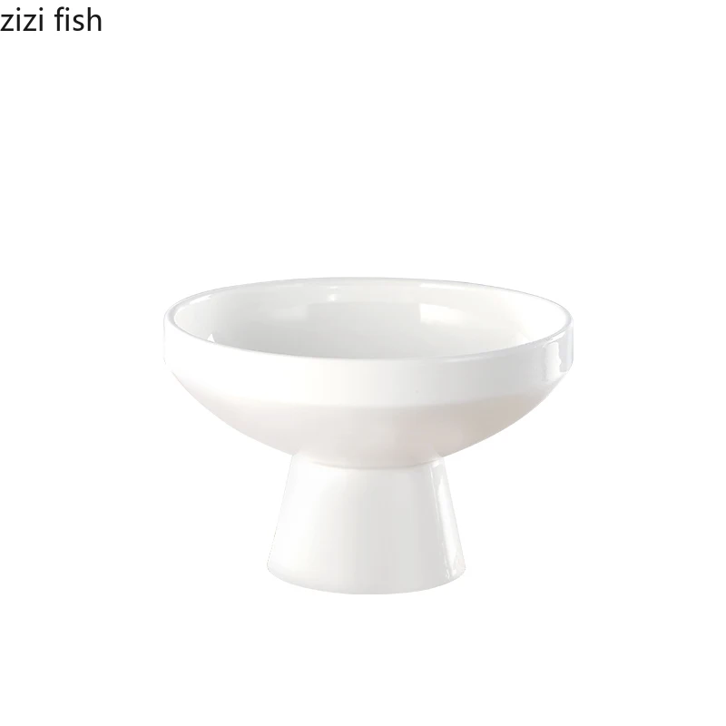 Керамический поднос для фруктов тарелка для закусок, бытовая круглая посуда, десертная тарелка, кухня, гостиная, высокий поднос, украшения, предметы для дома