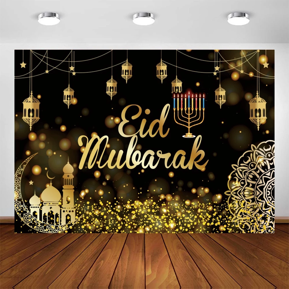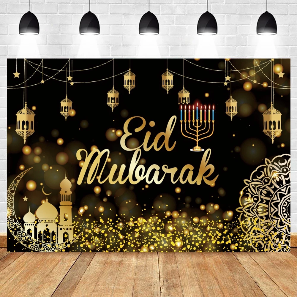 ИД Мубарак Рамадан вечерние Луна Детская фотография Декор Золотая Звезда блестящая мусульманская мечеть фотосессия фон для студийной съемки