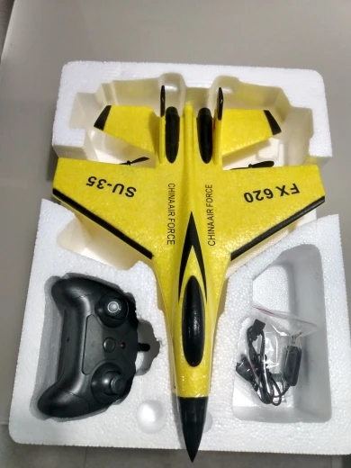 2,4 ГГц 2CH самолета, в том числе 4 направленный полет, восходящий, нисходящий, поворот влево, поворот направо.Название: RC самолетМодель: FX-620Цвет: желтый/синий/красный/КамуфляжМатериал: Прочный EPPПульт дистанционного управления: 2,4G 2CHВремя полета: около 12-15 минВремя зарядки: около 30-40 минСамолет Батарея: 3,7 V 220mAh литий-полимерный аккумуляторРасстояние дистанционного управления: около 120 мБатарея передатчика: 4 * AA батареи (не входят в комплект)Посылка в подарочной коробкеВозможны незначительные отклонения из-за ручного измерения.