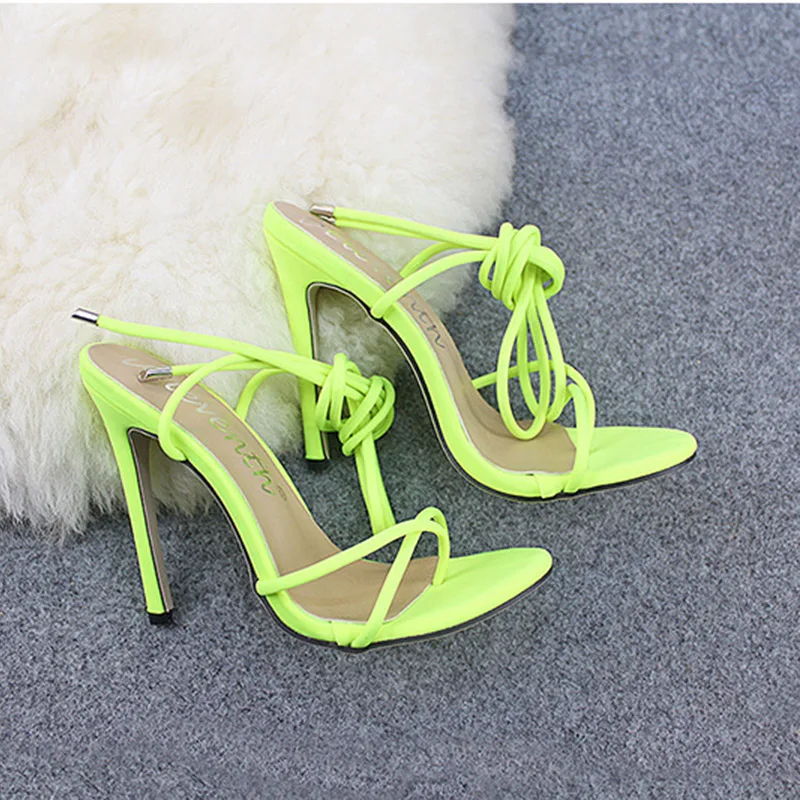 Женские босоножки на высоком каблуке 12 см, туфли-лодочки неонового зеленого цвета с ремешком, туфли-лодочки для стриптиза и ночного клуба, большие размеры до 43, лето 2022