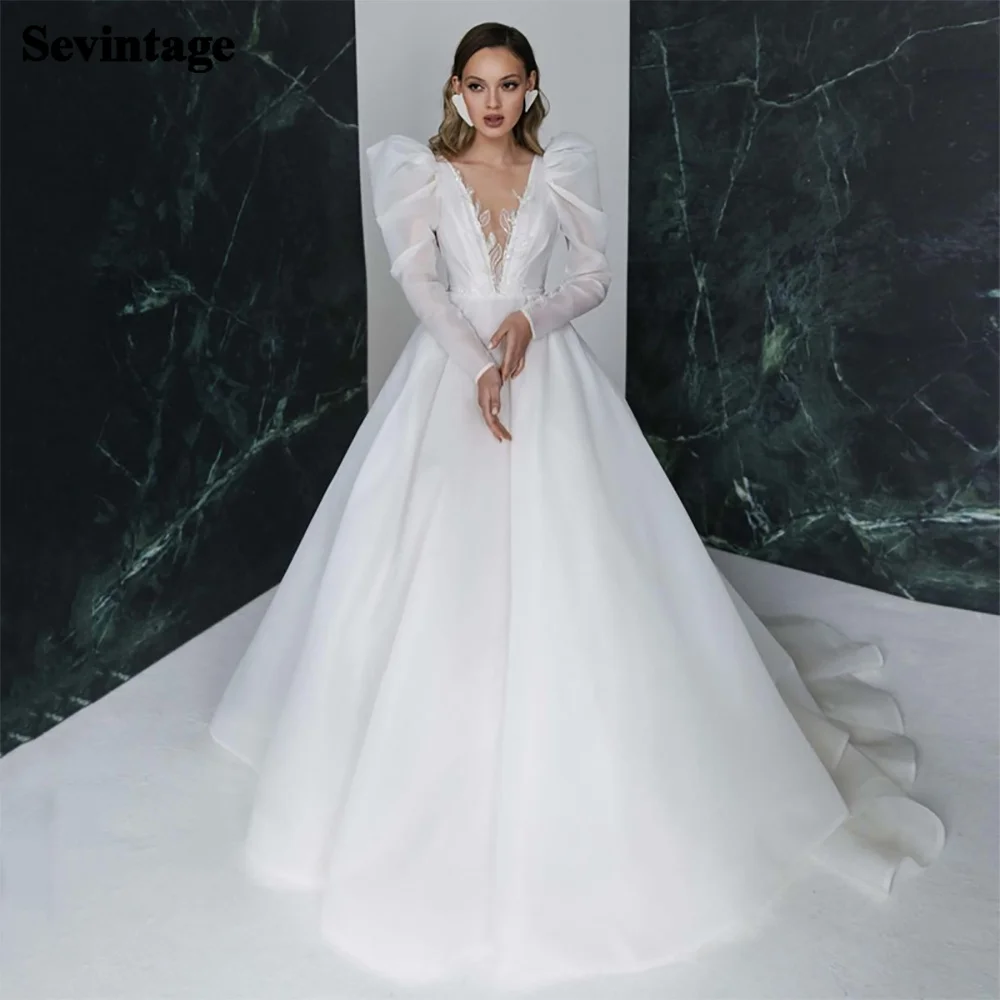 Свадебное платье с длинным рукавом и V-образным вырезом