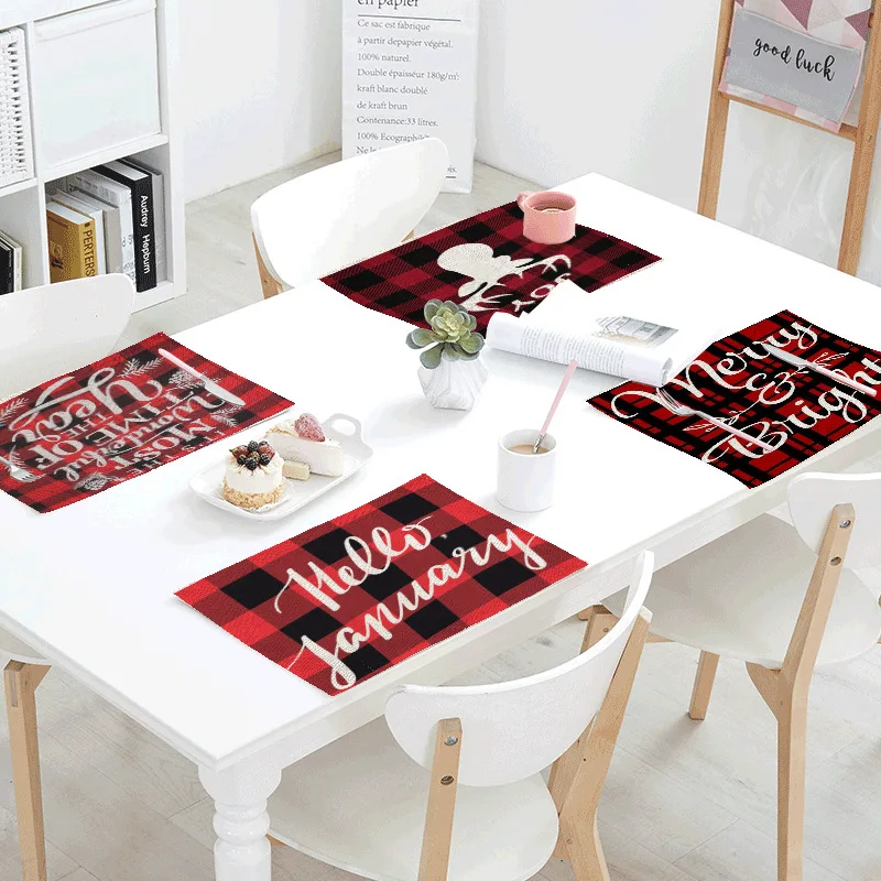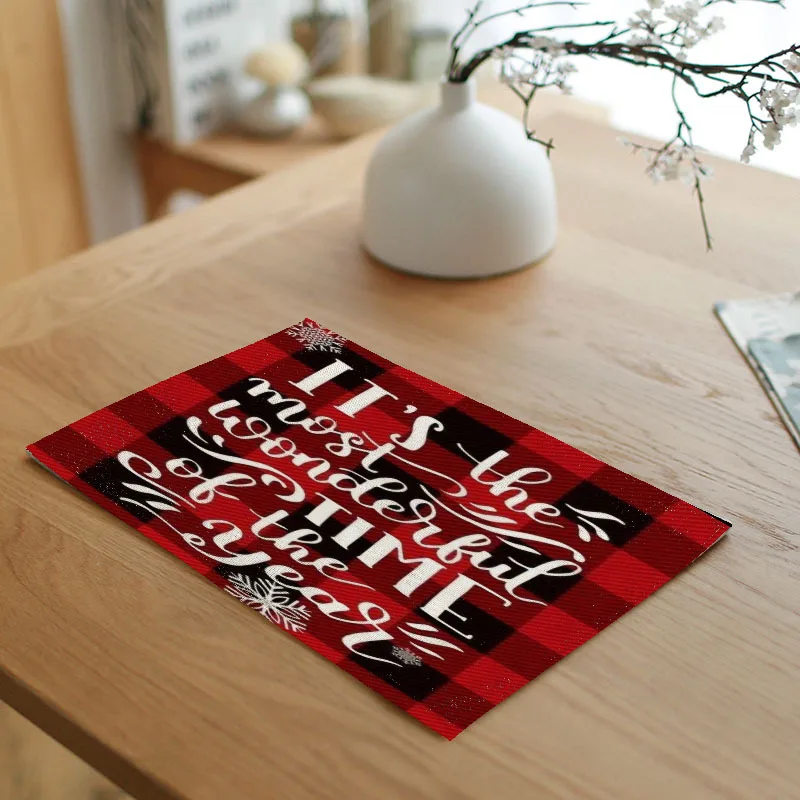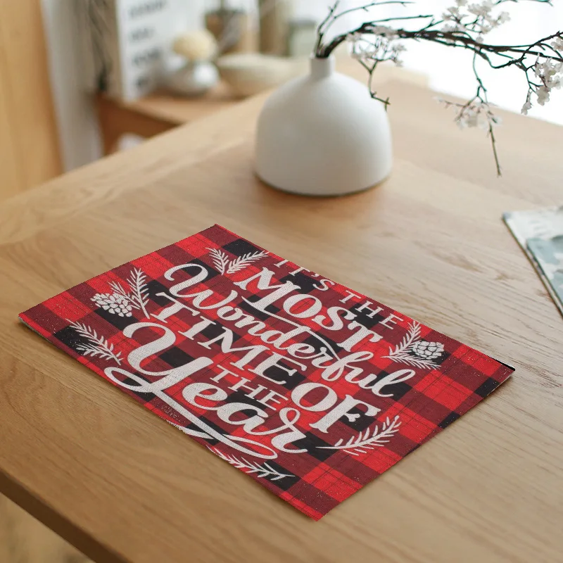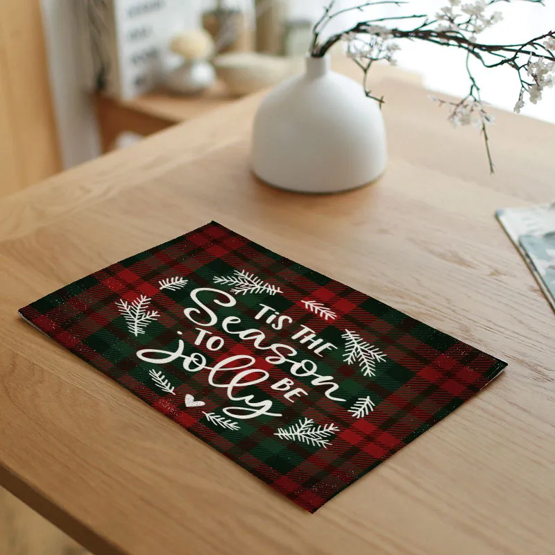 Рождественские салфетки, Нескользящие льняные коврики для стола, коврики для рождественской столовой, домашние украшения, рождественские украшения