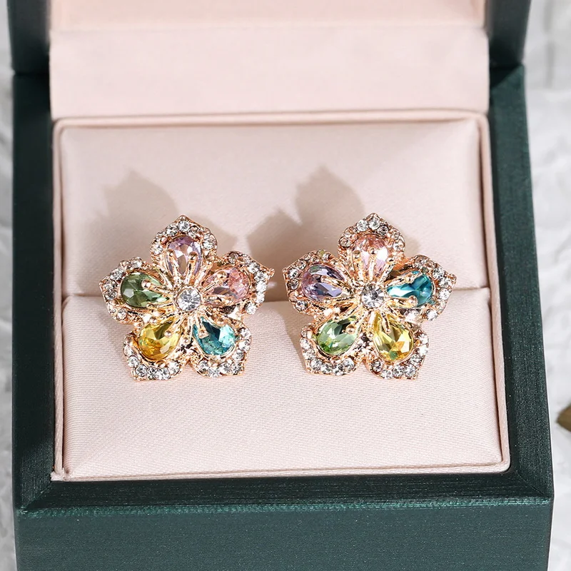Женские серьги из горного хрусталя, серьги из циркония с цветочным ...