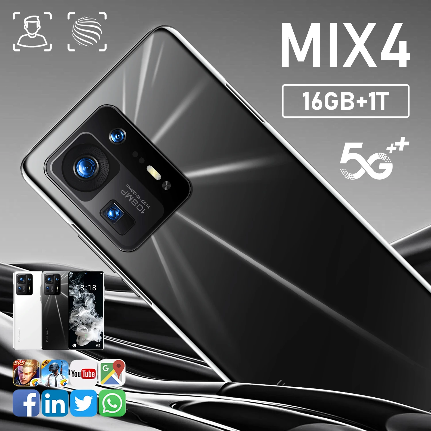 Новинка 2021, 5,5-дюймовый Смартфон HD MIX4 мобильный телефон 16 ГБ + ТБ, 7,3 мАч, 72 МП, 10 ядер, Android 12.0, телефон с разблокировкой Type-C, LTE