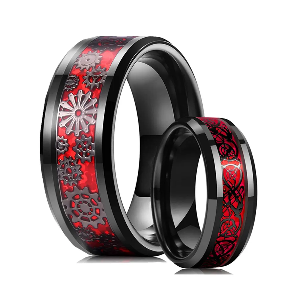 Винтажное мужское серебряное зубчатое колесо в стиле стимпанк из карбида вольфрама кольцо с инкрустацией дракона серебристо-голубое кольцо из углеродного волокна для мужчин обручальное кольцо