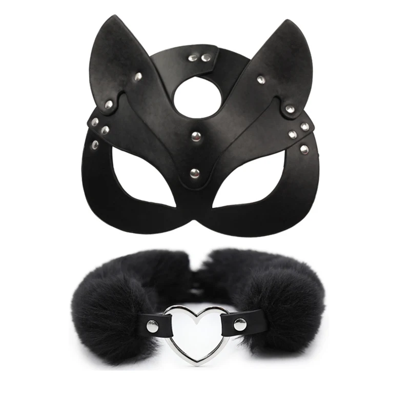 Порно кошка женская секс маска и ошейник Косплей лицо кошка кожа SM Хэллоуин Маскарадная маска для вечеринки эротические игры для взрослых секс-игрушки