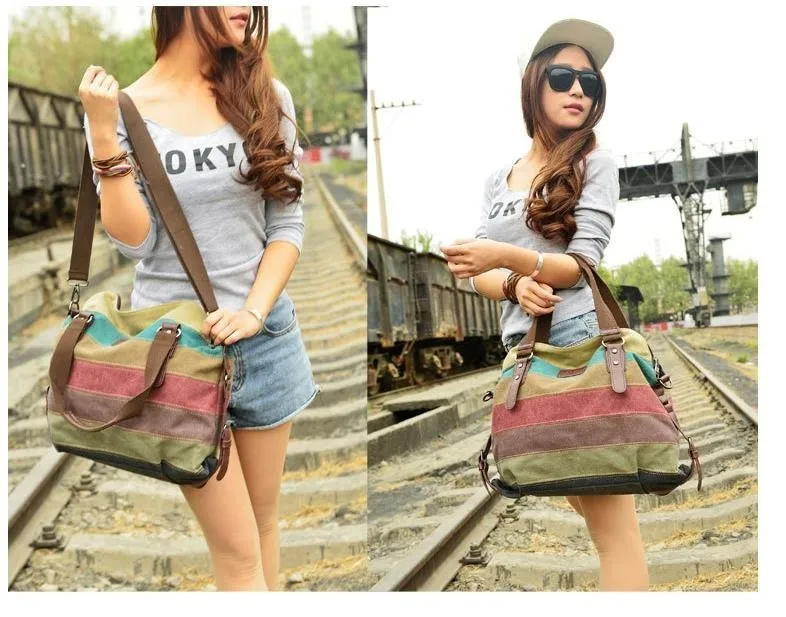 Холщовые сумки-тоуты в полоску для женщин, роскошные сумки 2021, Лоскутная Радужная сумка на плечо, модная женская Повседневная сумка через плечо, Sac A Main